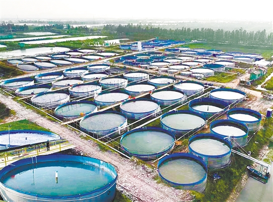 “我们利用潮汐将都市农业生态公园的西江水引进养殖基地,中间经过1公里的净化系统才注入鱼池。”月光宝盒鱼香园养殖基地负责人黄耀荣指着直径12米、高2.2米的“大圆桶”向记者介绍,与传统土塘养殖方式相比,他们选择采用设施化陆基养殖技术,这样不仅占地面积小,还能让养殖密度最高达到传统养殖的20倍以上。