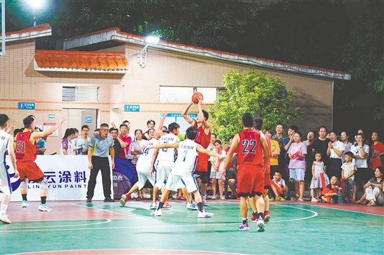 外海街道运动场上,“村BA”赛事精彩纷呈。何榕 摄