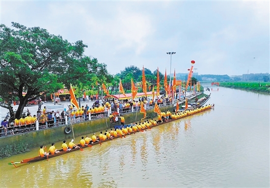 据了解,“址山龙湾龙舟”于2007年入选第一批鹤山市县级非物质文化遗产代表性项目保护名录,2021年入选第八批江门市级非物质文化遗产代表性项目保护名录。址山镇与周边的开平水口镇、新会司前镇同属潭江水系流域,域内水网交横纵错,江河密布,都有端午扒龙舟的习俗。三地约定每年农历四月上旬至端午节为龙舟节。其中的“龙舟友谊互访赛”(俗称“赛龙舟”)是每年龙舟节的高潮部分。