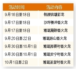 江门日报讯 (记者/张泽彬) 鼓乐齐鸣,火龙腾飞;共度中秋,喜迎国庆。9月16日至10月2日,江门鹤山将举行“龙腾非遗文化月”活动。届时,桃源钱塘彩龙及沙坪、雅瑶各村的香火龙将闪亮登场,舞动多彩鹤山非遗,弘扬优秀传统文化。