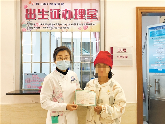 1月3日当天,鹤山市妇幼保健院签发了今年鹤山首张《出生医学证明》。
