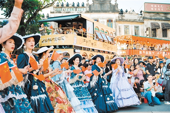 丰富的活动、优秀的场景布置让游客纷纷点赞。“我去过很多地方的古镇,福建的、海南的古镇我几乎走遍了。赤坎华侨古镇‘侨’特色鲜明,国庆假期活动也设计得很不错。希望能进一步讲好‘侨’故事,让这里成为全球华侨华人都知道的文化名片。”从广州来的许阿姨在接受记者采访时说。