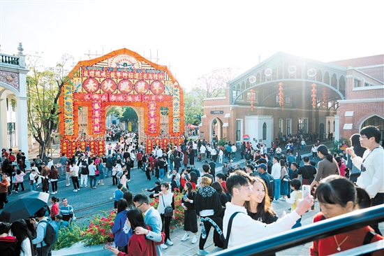 走进赤坎华侨古镇,浓浓的年味扑面而来。目前,景区围绕“中国年 看赤坎”主题,已完成70%的美陈布置,火秀广场、赤子广场等地已设置精美的香港花牌,让游客感受非遗魅力,赤子广场水岸已布置好花灯,营造热闹梦幻的氛围。