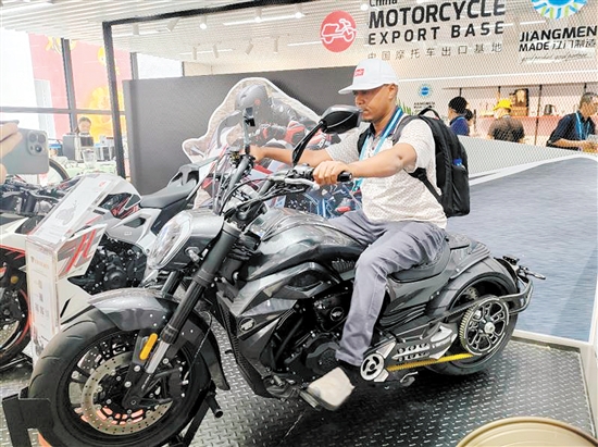 除了建雅摩托,不少蓬江知名摩托车企业也推出了创新产品,比如珠峰摩托则除了推出山地越野摩托车外,还推出了平板车等多个新车型;江门正豪摩托车有限公司(以下简称“正豪摩托”)推出的“老板”车型,外观炫酷又具备优秀性能,骑行体验十分舒适,深得外籍客商青睐。正豪摩托、江门鸿雅科技有限公司董事长易春介绍,前来跟他们公司对接的采购商,大部分来自共建“一带一路”国家,这与公司的发展方向十分契合。