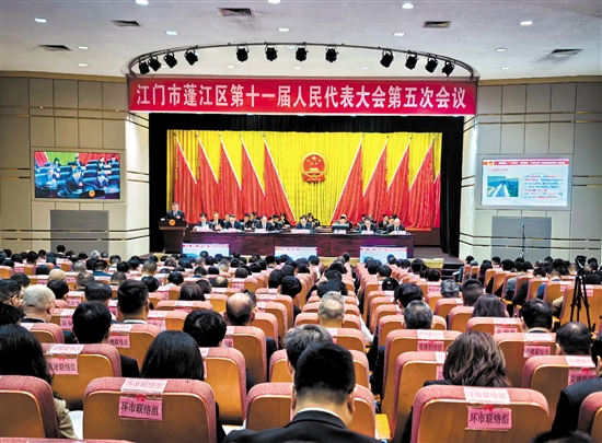 3月4日上午,蓬江区第十一届人民代表大会第五次会议在蓬江会堂开幕。