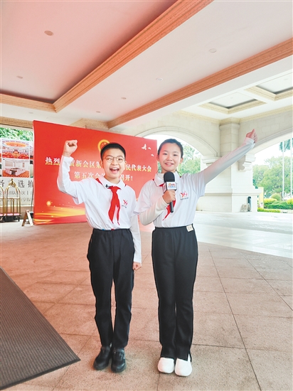 新会儿童观察团成员走进两会,参与报道。
