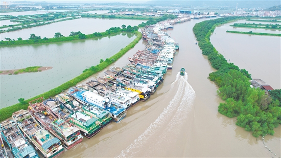 昨日(9月7日),台山市横山渔港停满了回港避风的渔船。 梁锦超 摄