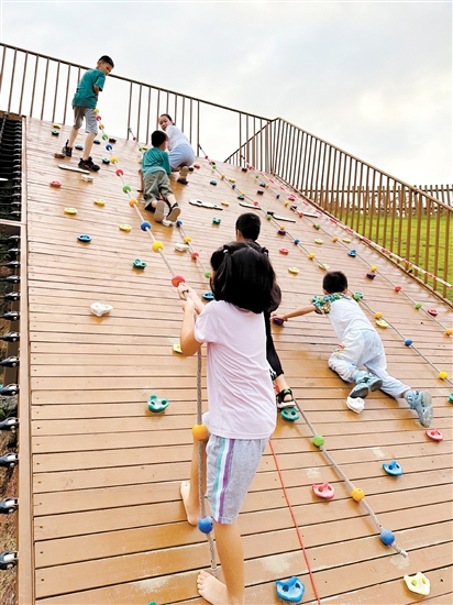 小朋友在新会儿童公园玩耍。