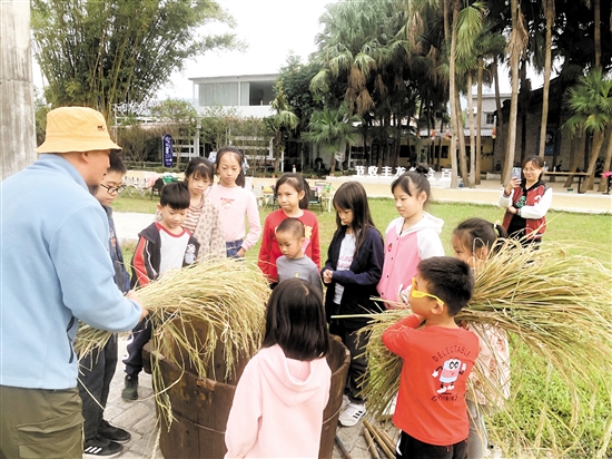 近期,湾区(百合镇)两龙村研学基地推出“研学在侨乡,游在田间”活动。“近期我们推出与众不同的线路,其中,12月初举办的秋收体验活动很受欢迎,参与的小朋友可以体验收割、打谷、晒谷等秋收活动。”湾区(百合镇)两龙村研学基地负责人张小明表示。