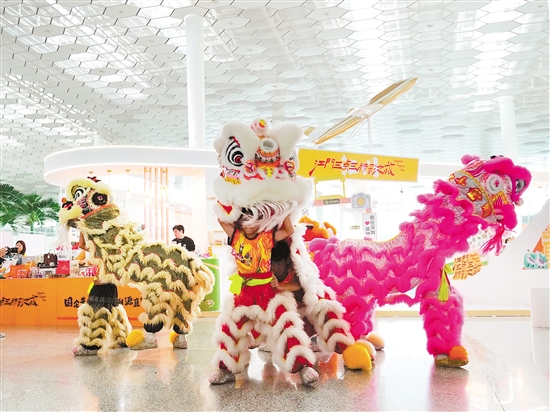 “江门小醒狮”亮相“深圳机场江门宣传周活动”。