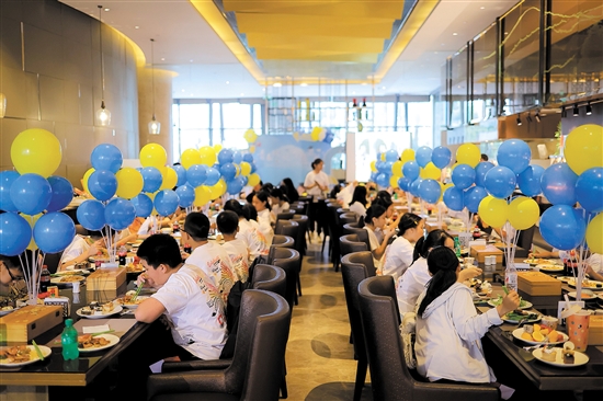 除了旅游餐饮需求旺盛,各类校友聚会的团餐订单激增,也进一步催热了暑期餐饮市场。“暑期是一些学生的毕业季、迎新季,进入6月以来,江门富力万达嘉华酒店平均每周承接3场校友聚餐活动,不久前还承接了江门一学校的迎新及毕业宴会,有1000多名学生参加,场面十分热闹。”简小姐说。