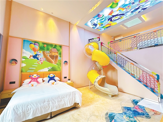 据巴贝高文旅集团负责人彭薇霖介绍,暑期以来酒店预订量持续攀升,其中梦想升空亲子房、鲸生鲸世亲子房因配备室内滑梯,成为最受欢迎的房型之一。