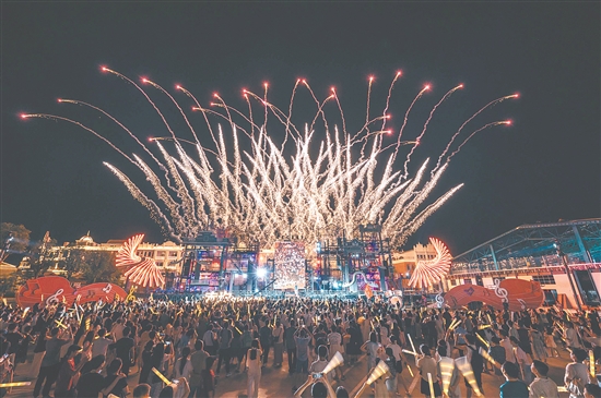 7月25日晚,赤坎华侨古镇上空烟花绚烂,歌手后弦深情献唱《娃娃脸》,熟悉的旋律瞬间点燃现场,将气氛推向高潮。据景区统计,当天吸引游客4500人次,比平日增长85%。