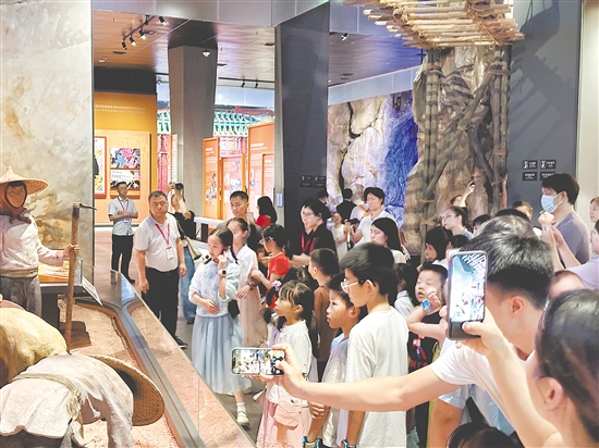 暑期,中国侨都华侨华人博物馆吸引众多青少年前来参观。