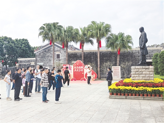 昨日下午2时许,梁启超故居铜像广场人头攒动,景区迎来了客流高峰。在铜像前,游客们举着手机争相打卡,景区文创区更是热闹,大家积极参与集章活动,讨个好彩头。与广场上的喧闹形成鲜明对比,不远处的怡堂书室、故居纪念馆、仁堂内静谧庄重,市民、游客有序参观。来自澳门的赵先生趁着回乡拜年的机会,特意带子女前来参观。他驻足于《少年中国说》手稿展柜前,轻声为孩子讲述梁启超的童年轶事。“带孩子来名人故居过年,既感受了年味,又学到了课堂外的知识,特别有意义。”赵先生说。