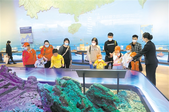 市民游客在侨博馆认真观看展品,了解江门籍华侨华人的奋斗故事和爱国爱乡情怀。