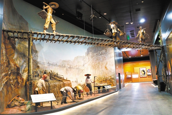 中国侨都华侨华人博物馆固定陈列“远赴重洋”篇章,再现了华工“海外拼搏”的场景。 黎禹君 摄