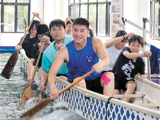 今年7月,香港裘锦秋中学30名青年来到侨都江门,开展为期4天的江港青年侨乡文化交流活动。交流期间,香港裘锦秋中学龙舟队的成员梁逸晴与新会泓达堂陈皮龙舟队的队员一起训练,并得到他们的悉心指导。在波光粼粼的潭江水面上,香港青年动作整齐划一、奋力挥动龙舟桨,只见两条龙舟劈波斩浪向前飞驰,龙舟两旁浪花激扬……“机会很难得,我们是抱着学习的心态来的,通过这次交流活动学到了平时训练学不到的东西,还纠正了一些错误动作,收获真的很大。”梁逸晴说,今年暑假她过得很充实。