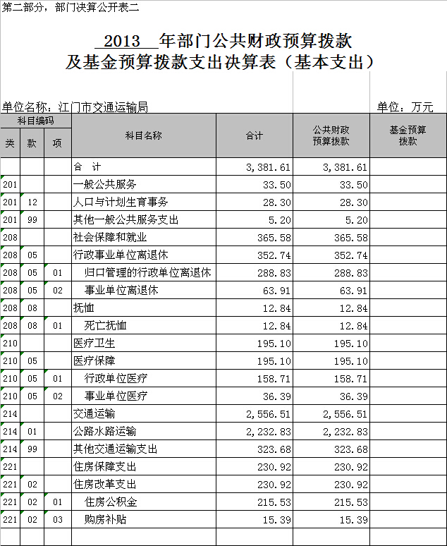 第一部分 2013 年江门市江门市交通运输局部门决算基本情况说明
