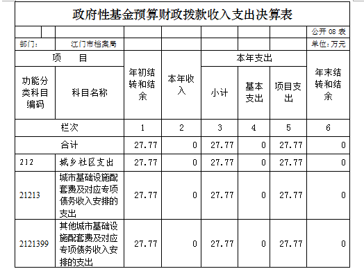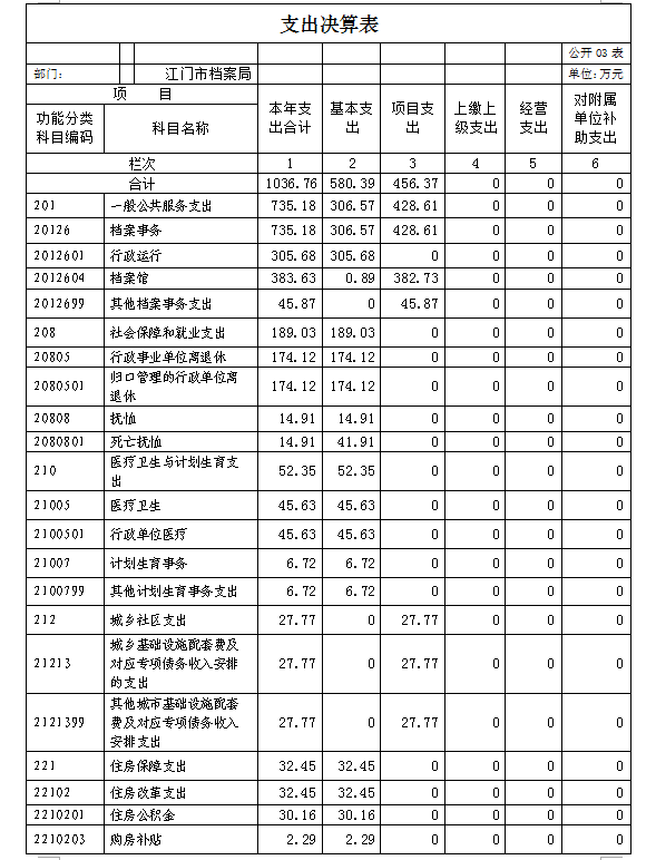 江门市档案局2015年度支出合计1036.76万元。具体如下;