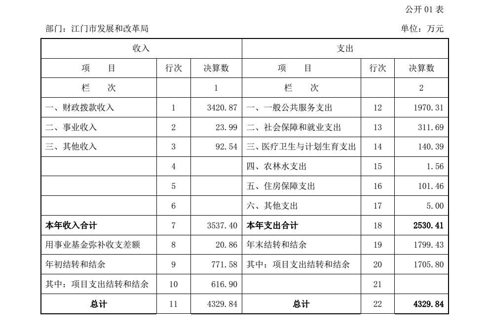江门市发展和改革局2015年度总收入4329.84万元,其中本年收入3537.40万元。具体情况如下: