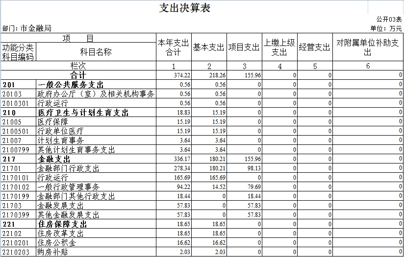 (2)本表功能科目填列到项级支出科目,没有发生数的支出科目不用填列。
