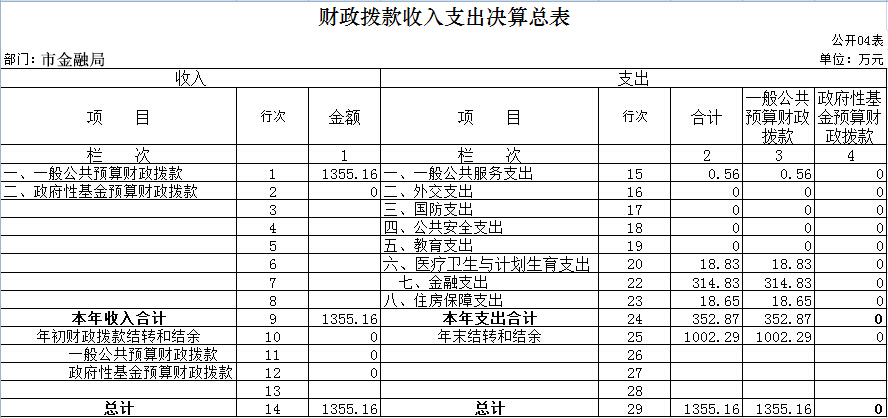 注:本表反映部门本年度财政拨款的总收支和年末结转结余情况。有关填表说明: