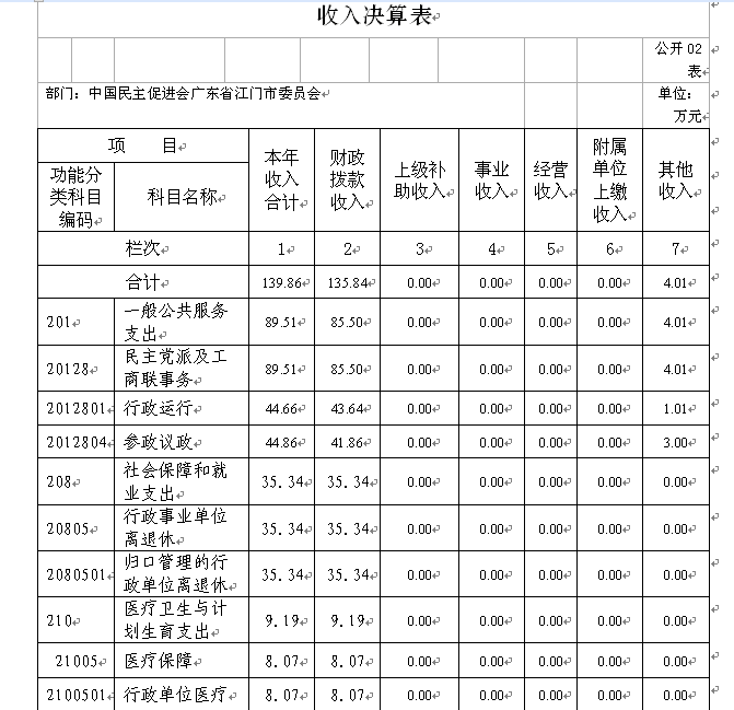 民进江门市委员会2015年度总收入147.40万元,其中本年收入 139.86万元。具体情况如下: