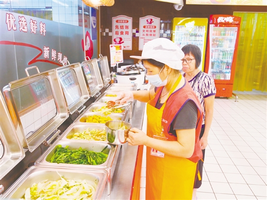 长者点赞社区饭堂的菜品。