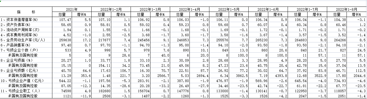 2022年8月工业企业效益(二)_统计月报_太阳3娱乐