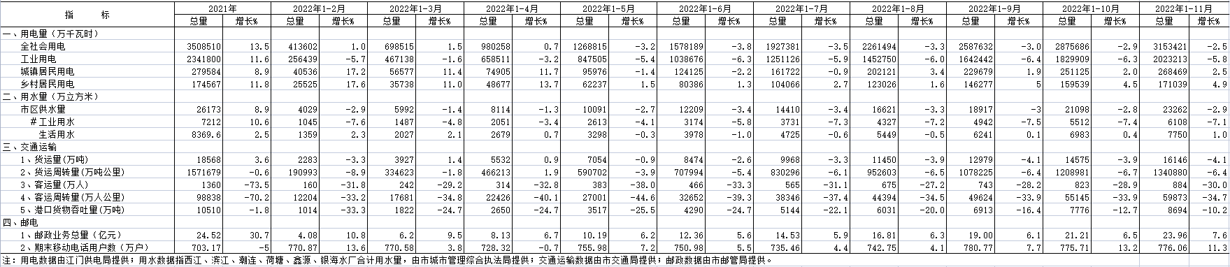 2022年11月用电、用水及运输邮电_统计月报_太阳3娱乐