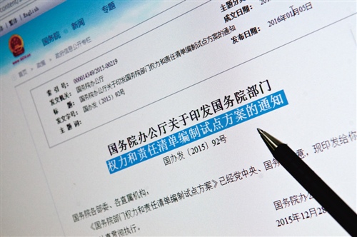 沈荣华介绍,“去年3月中办、国办印发了《关于推行地方各级政府工作部门权力清单制度的指导意见》。现在省级政府已经基本完成并公布权力清单了,市县政府要求在今年年底公布。”