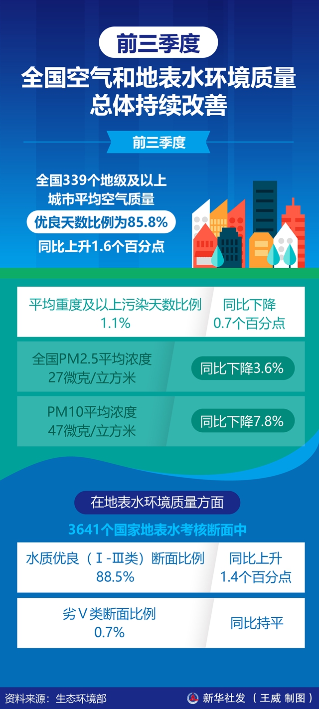 图表:前三季度全国空气和地表水环境质量总体持续改善