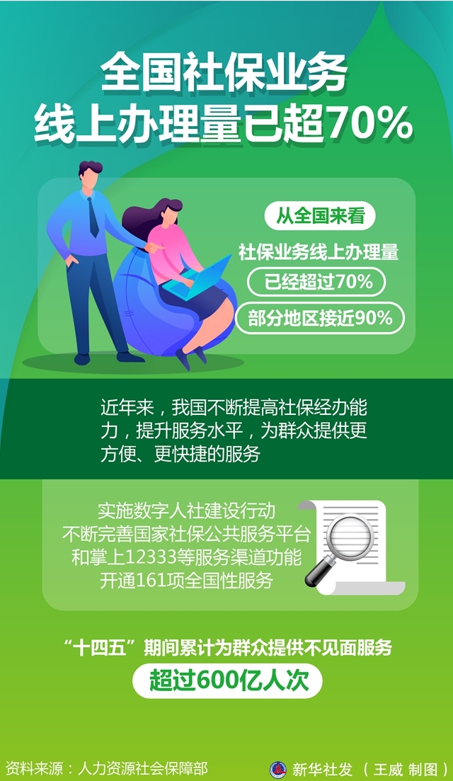 图表:全国社保业务线上办理量已超70%