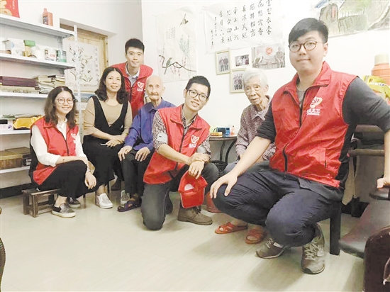甘化社区经常开展群众活动,去年重阳节前夕,社区主任廖玉娇(左二)带队看望社区百岁老人。(图由采访对象提供。)