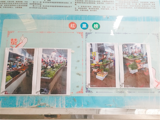 外海中心市场的文明经营“红黑榜”。