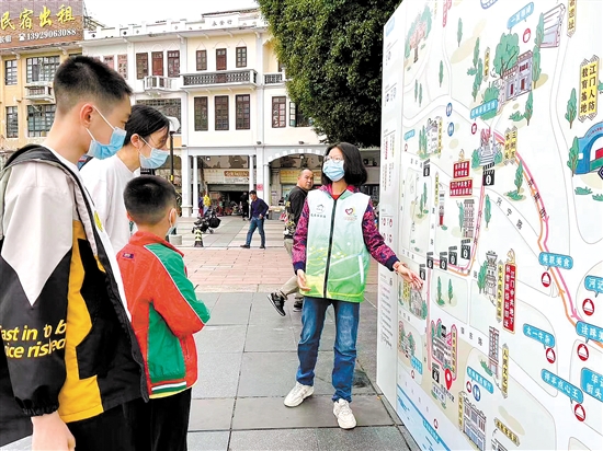 该培育计划结束后,参与培训的志愿“导赏员”经过筛选和评估正式上岗。如今每逢周末,他们放弃休息时间,为市民游客提供导赏讲解、文明劝导、人流疏导等志愿服务,倡导文明旅游,助力擦亮江门城市名片,打响中国侨都品牌。