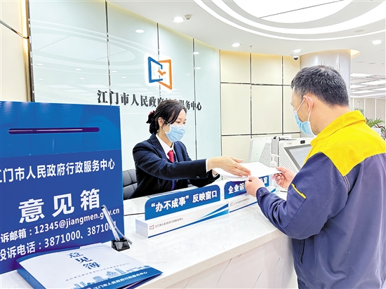 江门深化开展“我为群众办实事”实践活动,制定为民办实事清单。图为“办不成事”反映窗口让群众“办得成事”。陈敏锐 摄