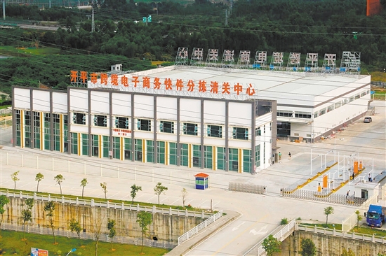 翠山湖高新区特有配套项目,推动外贸企业集聚入园发展。图为开平市跨境电商快件分拣清关中心。