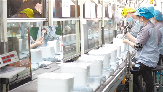 去年以来,蓬江区精心布局,大力发展“3+2”产业集群。图为乐米电器生产车间。 刘淑君 摄