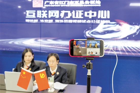 五邑公证处入选司法部、外交部海外远程视频公证试点。去年,江门联合我国驻新加坡大使馆完成数宗海外远程视频公证事项办理,让我市的涉外公共法律服务触角大大延伸。