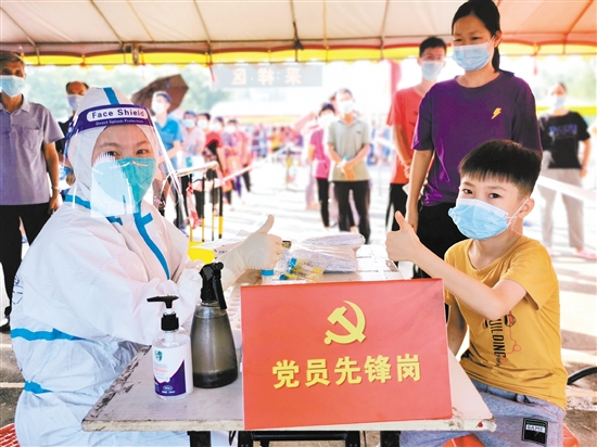 我市在核酸采样点设置“党员先锋岗”,筑起疫情防控坚固防线。