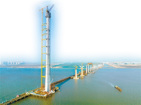 今年1月,黄茅海跨海通道高栏港大桥东塔顺利封顶。