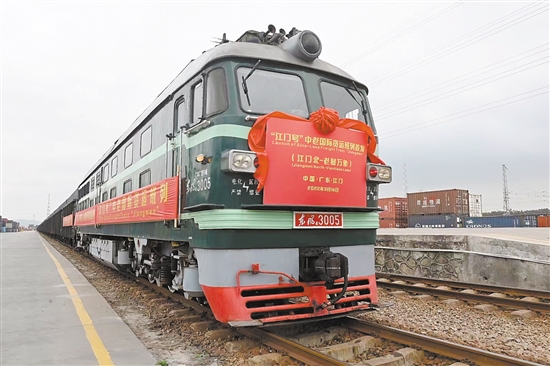 2022年3月16日,“江门号”中老国际货运班列从江门北站首发。
