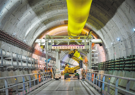 深江铁路建成通车后,将把深圳、东莞、广州、中山、江门这五座大湾区城市更紧密连接在一起。目前,深江铁路珠江口隧道盾构段掘进过半。新华社发