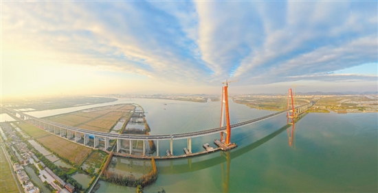 今年1月,深江高速江门段全线通车,银洲湖特大桥是关键控制性工程。