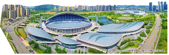 江门环境优美、宜居宜业。图为江门体育中心及周边风貌。